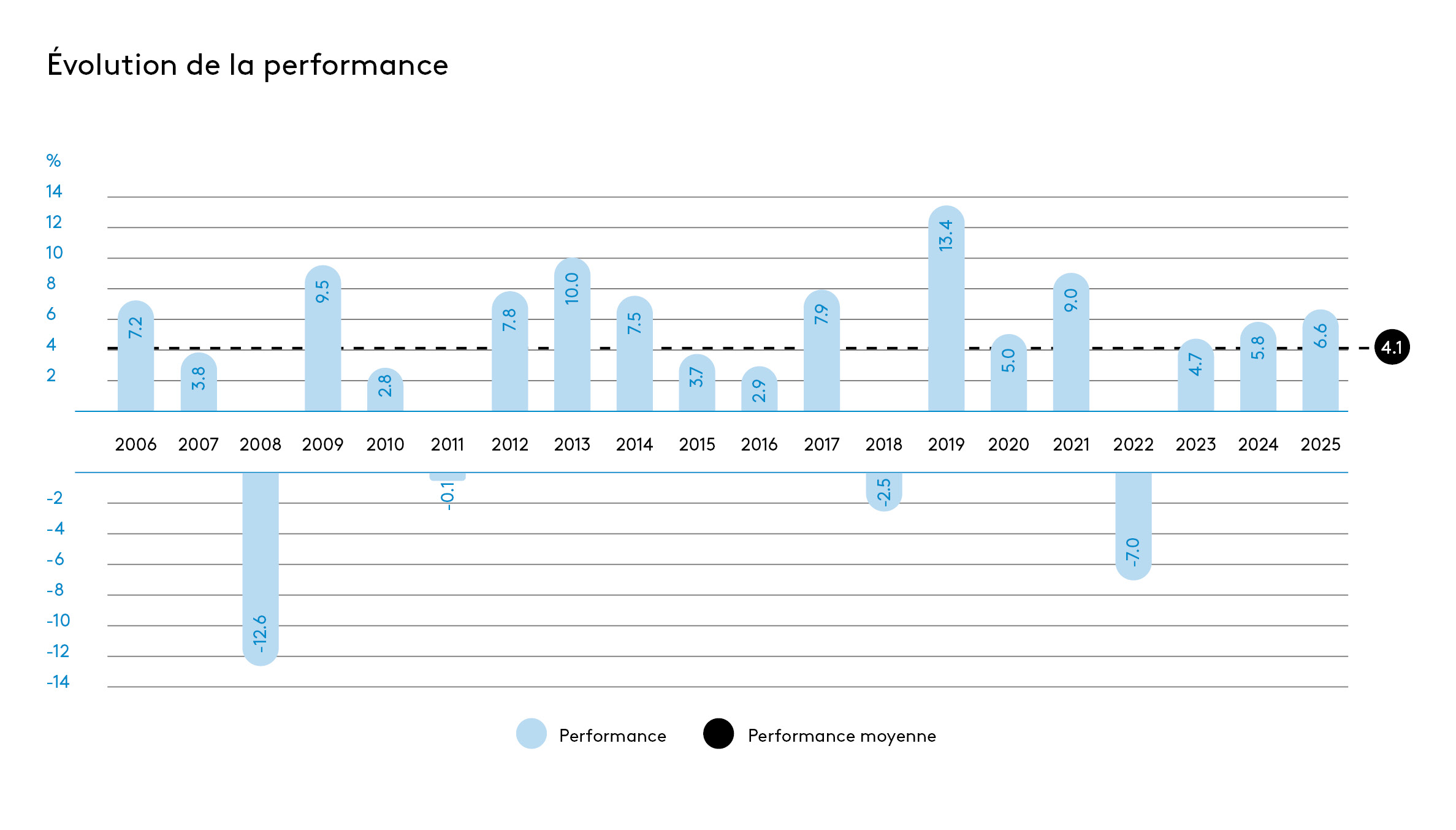 Après les années 2023 et 2024 où les performances globales étaient positives, l’année 2025 suit la tendance et conclut une troisième année consécutive d’une progression solide. Cette évolution positive a été rendue possible par une économie mondiale qui est restée en croissance. L’action des banques centrales est également à mettre à l’honneur car elles ont poursuivi leur politique de baisses des taux.